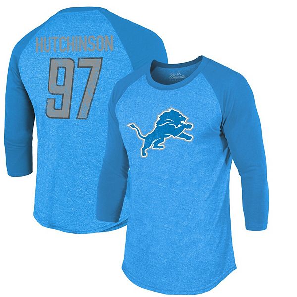 Men S Majestic Threads Aidan Hutchinson Blue Detroit Lions Team Color Player Name Number 3 4 Sleeve Raglan T Shirt